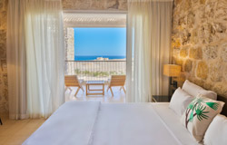 A slightly arger upgrade to the standard rooms, but still with a beautiful, spacious interior, an ensuite bathroom equipped with eco-toiletries, and a private sea-view terrace or balcony.